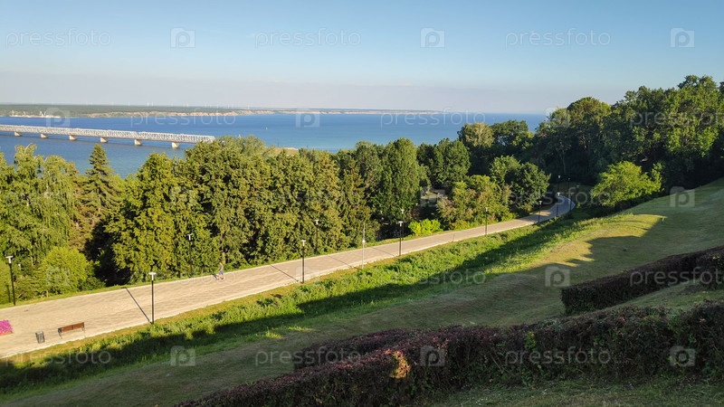 Ульяновск, Россия Парк дружбы народов Волга Императорский мост Куйбышевское водохранилище Летний вечер
