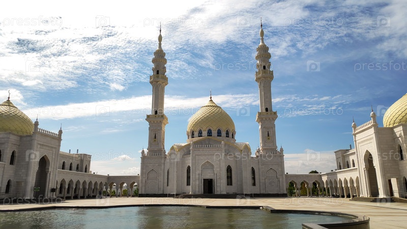 Болгар, Республика Татарстан, Россия. Белая мечеть. Болгарский государственный историко-архитектурный музей-заповедник. Летний день