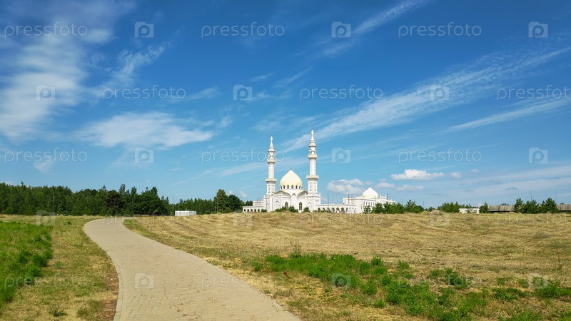Болгар, Республика Татарстан, Россия. Белая мечеть. Болгарский государственный историко-архитектурный музей-заповедник. Летний день