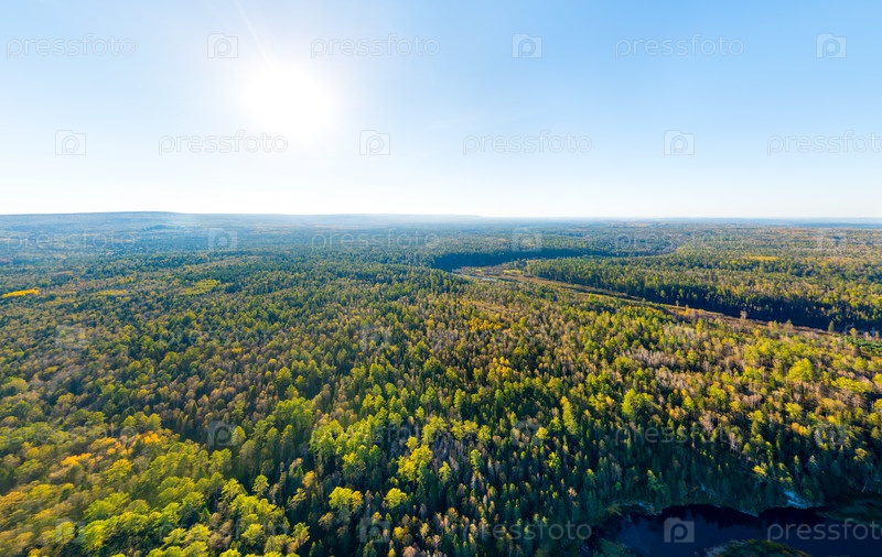 Бажуково, Россия. Каменный Карстовский мост. Река Серга. Осенний пейзаж. Оленьи ручьи. Природный парк в лесистой местности, известной богатой флорой. Вид с воздуха