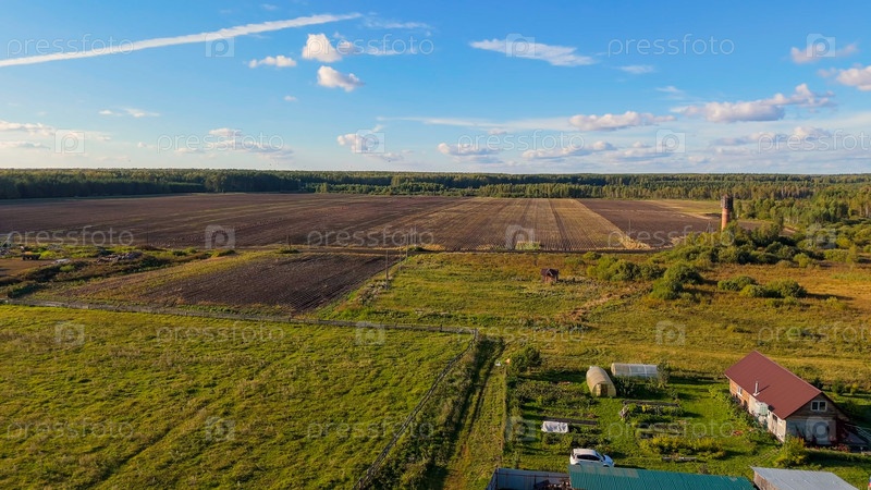Екатеринбург, Россия.Арное поле.Урожай.Очистка картофеля.Сегодня вечером.Ранняя осень, вид с воздуха