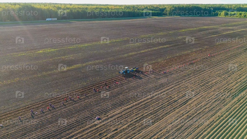 Екатеринбург, Россия.Арное поле.Урожай.Очистка картофеля.Сегодня вечером.Ранняя осень, вид с воздуха
