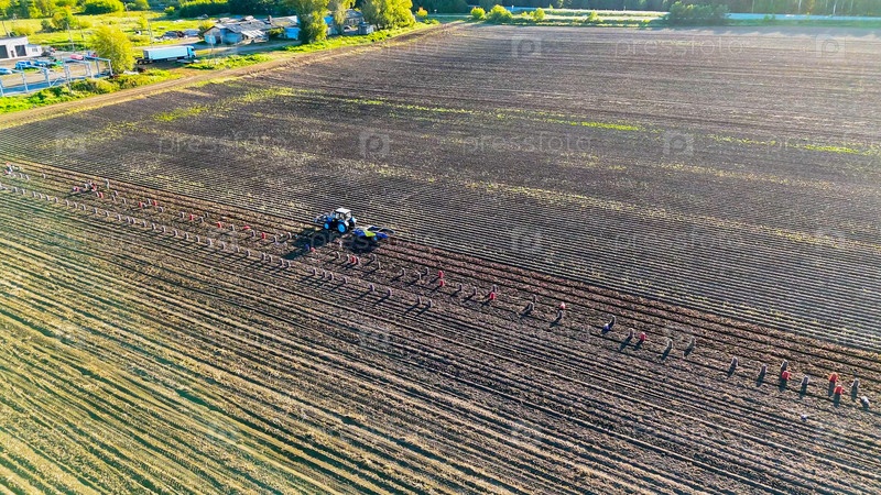 Екатеринбург, Россия.Арное поле.Урожай.Очистка картофеля.Сегодня вечером.Ранняя осень, вид с воздуха