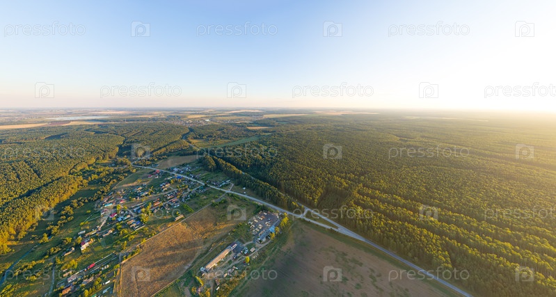 Екатеринбург, Россия Лесной пейзаж с полями и деревнями Время захода солнца Вид с воздуха