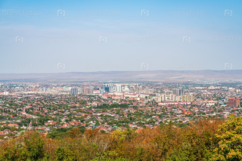 Грозный, Россия Панорама города осенью Яркое солнце