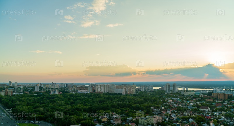 Самара, Россия Вид на город Самара Время захода солнца Панорама сверху