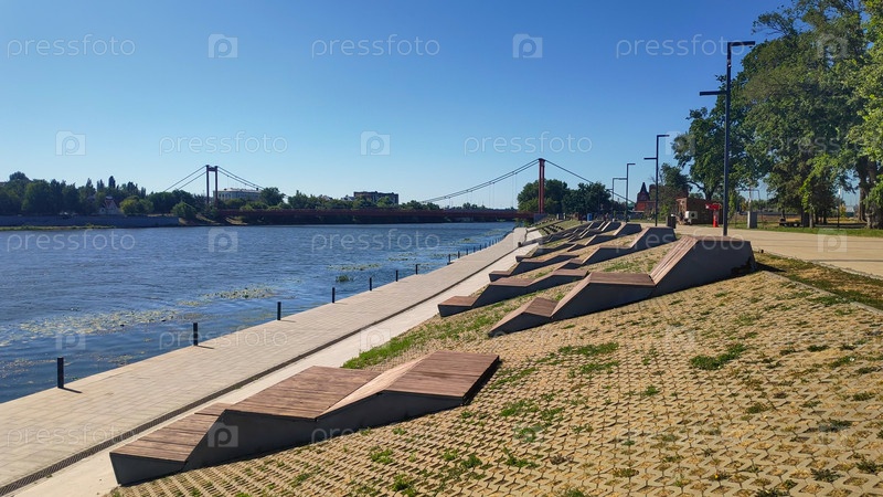 Пенза, Россия Развитое общественное пространство Набережная реки Сура Летнее утро