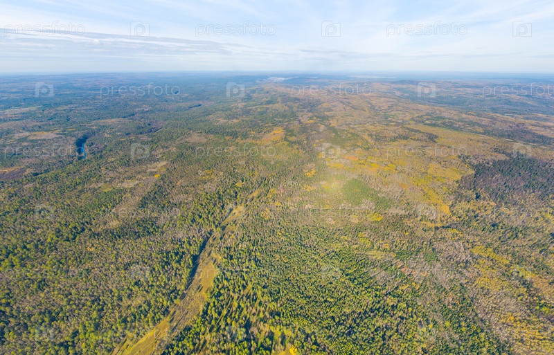 Бажуково, Россия. Осенний пейзаж. Серые ручьи. Природный парк в лесистой местности, известной богатой флорой. Вид с воздуха