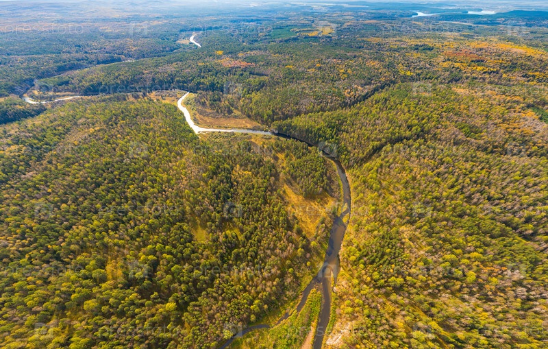 Бажуково, Россия. Легкая скала. Река Серга. Осенний пейзаж. Оленьи ручьи. Природный парк в лесистой местности, известной богатой флорой. Вид с воздуха