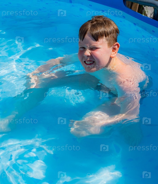 Улыбающийся ребенок любит плавать в бассейне