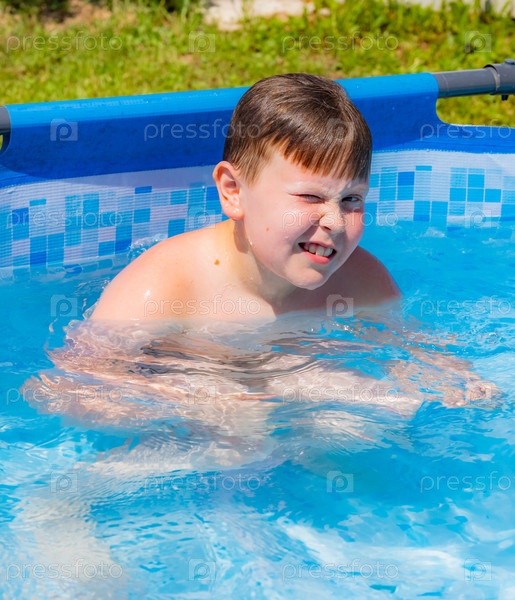 Улыбающийся ребенок любит плавать в бассейне