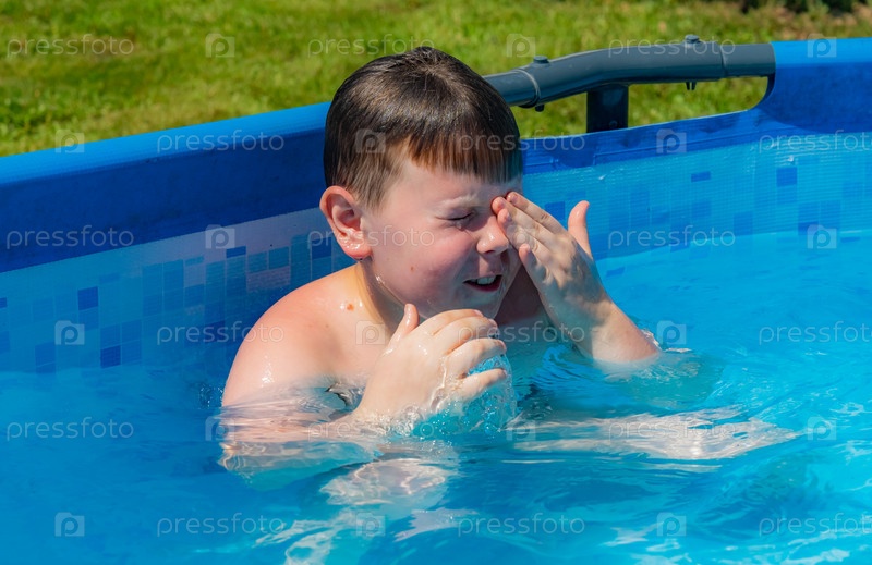 Улыбающийся ребенок любит плавать в бассейне