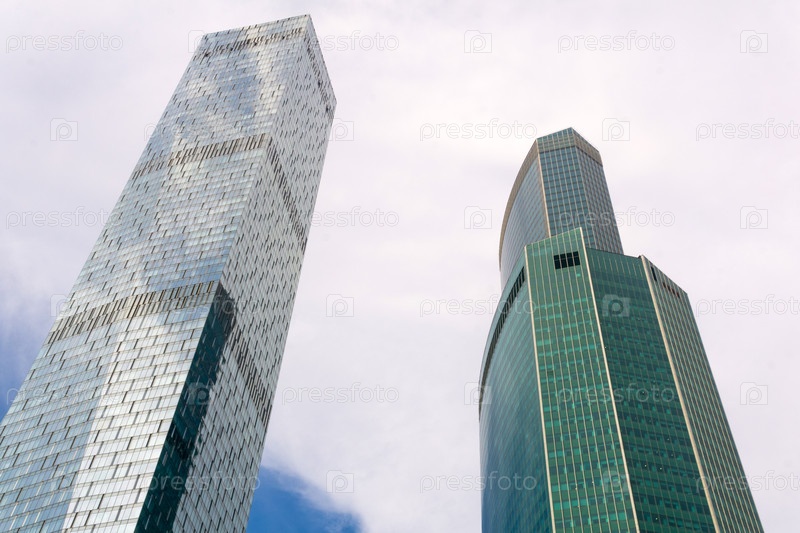 Низкий угол обзора современных небоскребов стеклянные стены