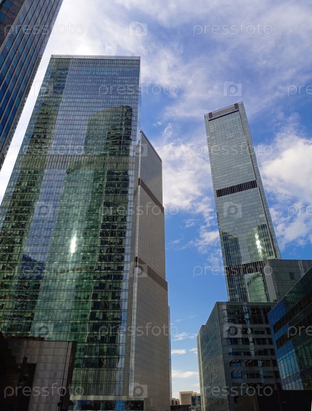 Современные небоскребы в финансовом районе против неба