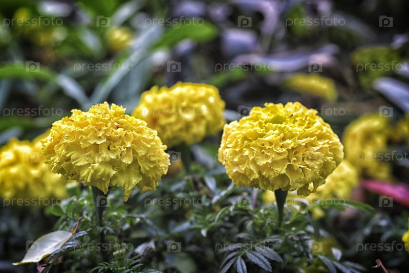 Желтые цветы бархатного бархата в саду