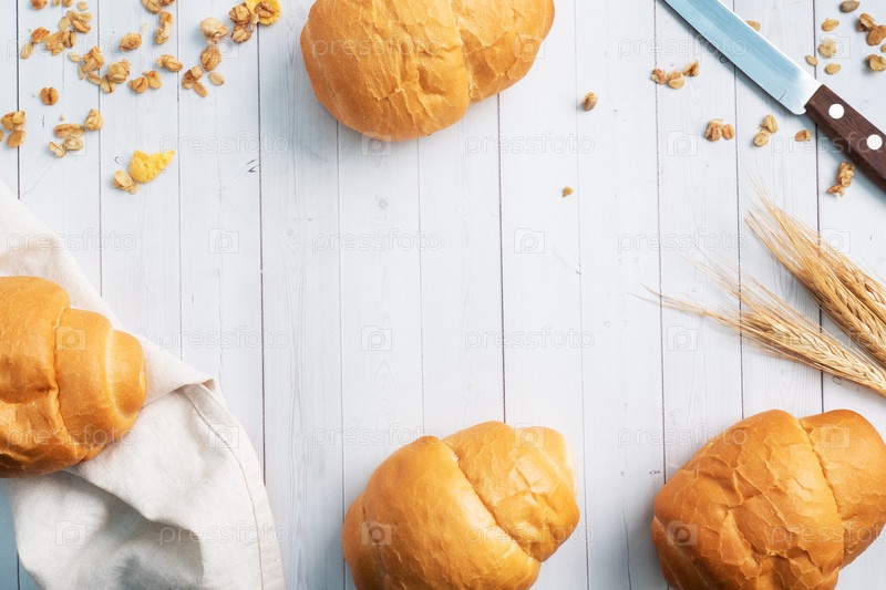 Свежий хлеб из пшеницы роллы для хот-догов или гамбургеров белый фон копия пробела