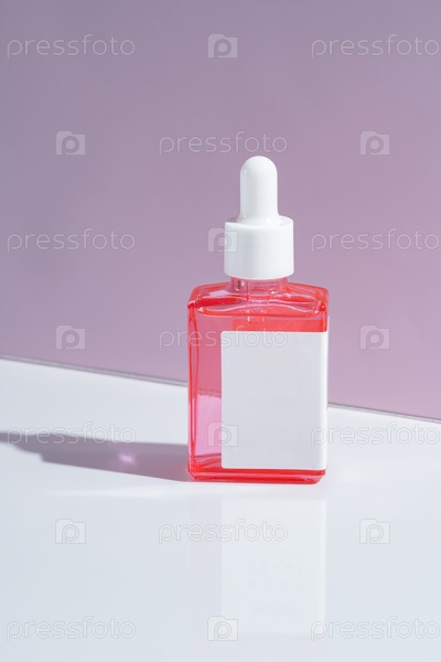 Стеклянный капельник с красивой ретинольной сывороткой для лица на розовом фоне со теней антивозрастная сыворотка с натуральными ингредиентами