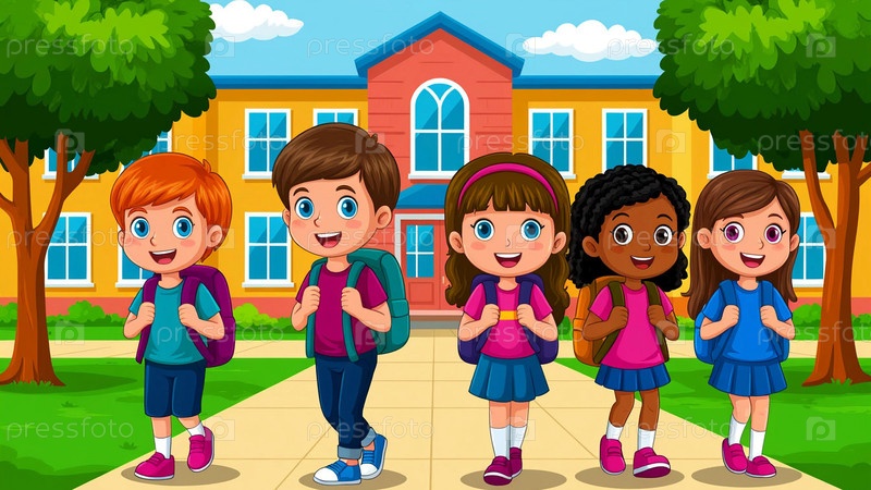 дети на фоне школы
