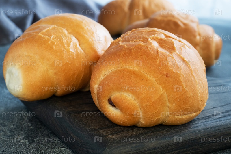 Свежий пшеничный хлеб. роллы для хот-догов или гамбургеров. темное фоновое пространство