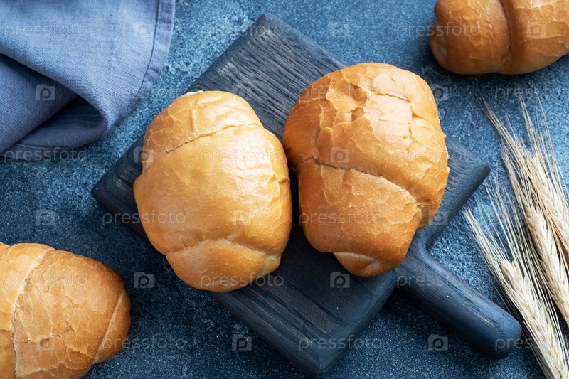 Свежий пшеничный хлеб. роллы для хот-догов или гамбургеров. темное фоновое пространство