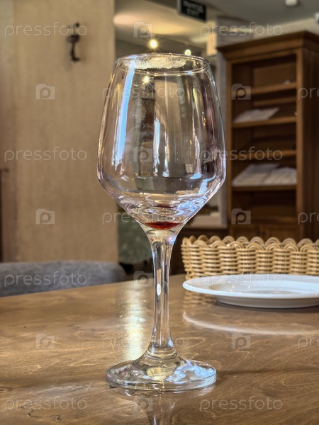 Стакан красного вина на деревянном столе в уютном ресторане