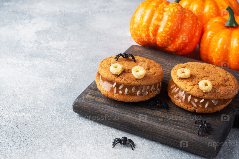 Забавные лица домов, сделанных из овсяночных печенья и вареного конденсированного молока копируют пространство