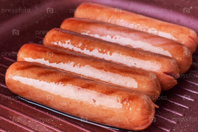 Сочные колбасы жарены в сковороде
