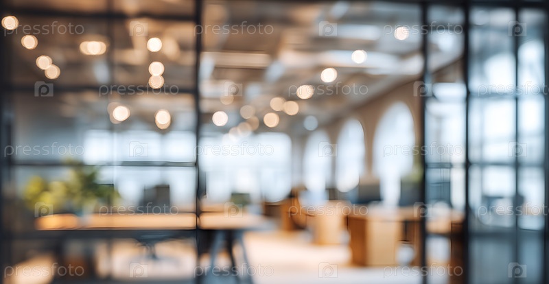 Современный офис с размытым фоном и стеклянными перегородками