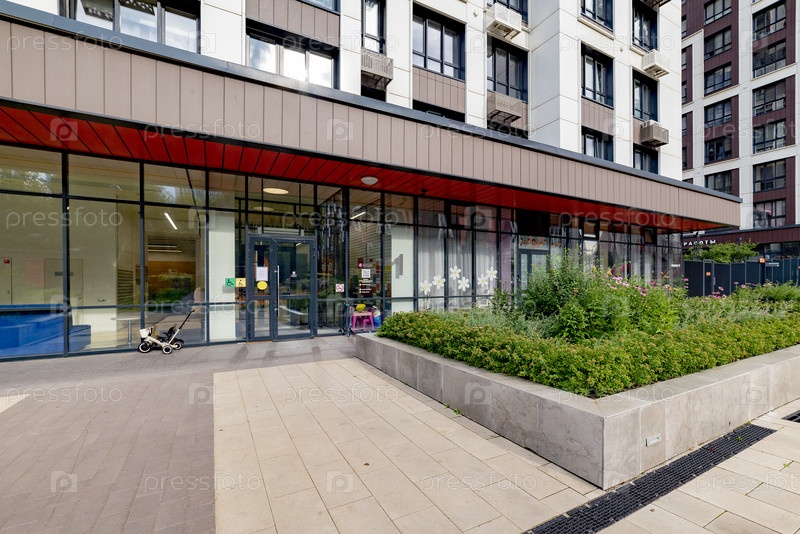 Вход в современный жилой комплекс в Москве