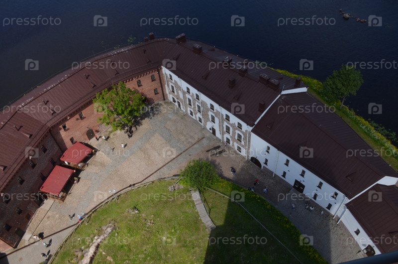 Вид на внутренний двор Выборгского замка с смотровой площадки башни Святого Олафа: Zeichhaus, Малый арсенал, административные здания
