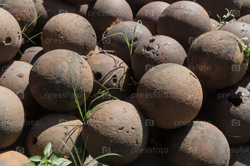 Куча старых железных пушечных патронов на близком расстоянии