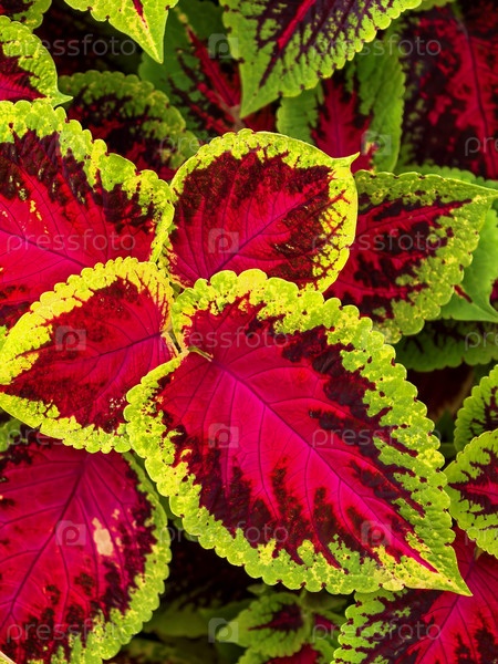 Яркое закрытие многоцветных листьев Coleus