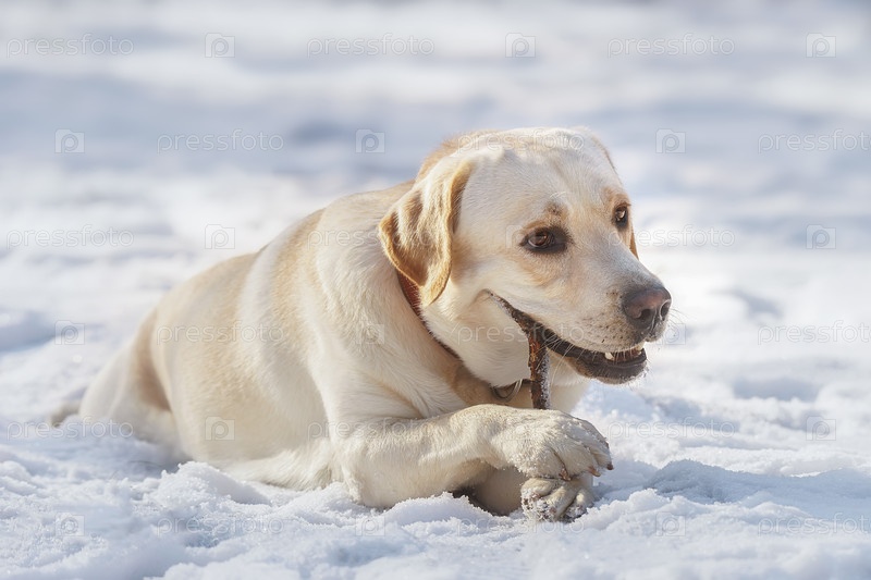 Лабрадор сидит на снегу