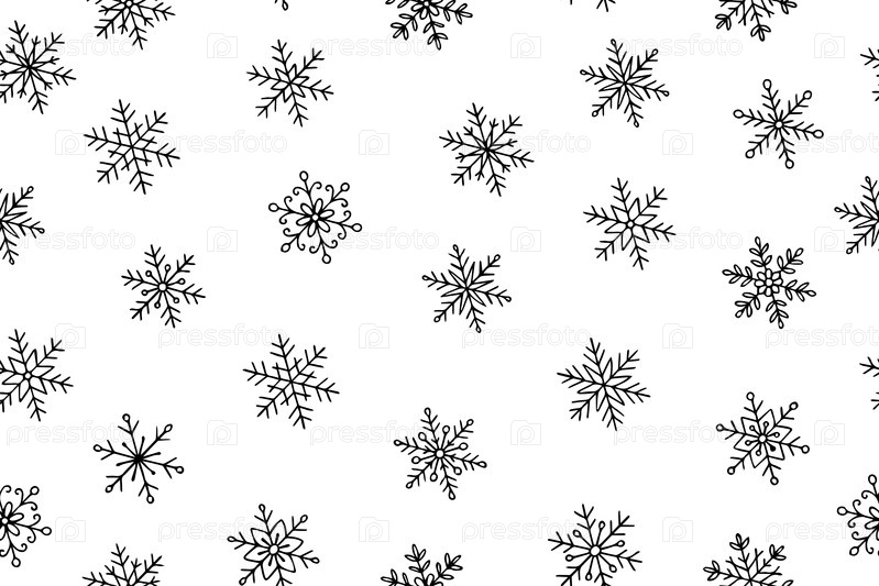 Зимний праздничный бесшовный рисунок со снежинками в стиле doodle. черно-белые векторные иллюстрации