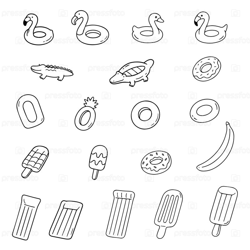 Надувные кольца и другие аксессуары для купания в бассейне и море в стиле doodle