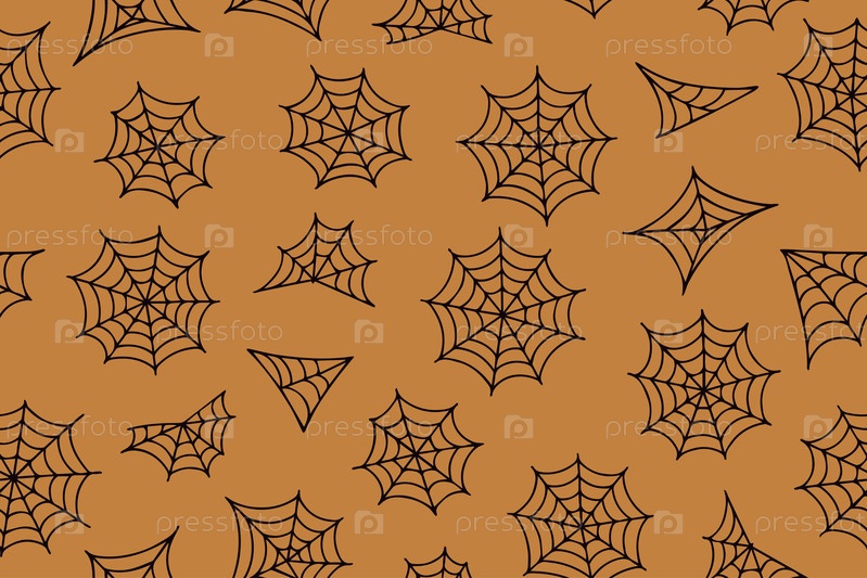 Бесшовный рисунок черной паутины на Хэллоуин. 'Хеллоуинская паутина', рамки и границы, ужасные элементы для декора на оранжевом фоне