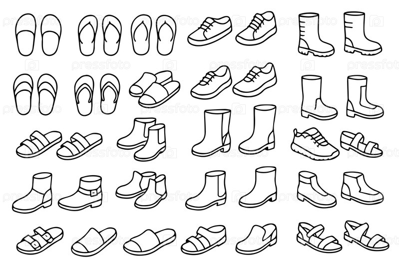 Коллекция мужских и женских наборов обуви, векторная иллюстрация