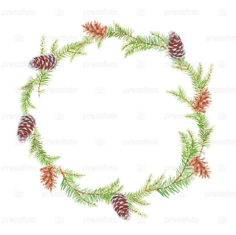 Рождественская елка круглый рамок лесный венок. ручной акварели. для ткани, обоев, упаковочной бумаги, поздравительных открыток, дизайна, декора и иллюстрации