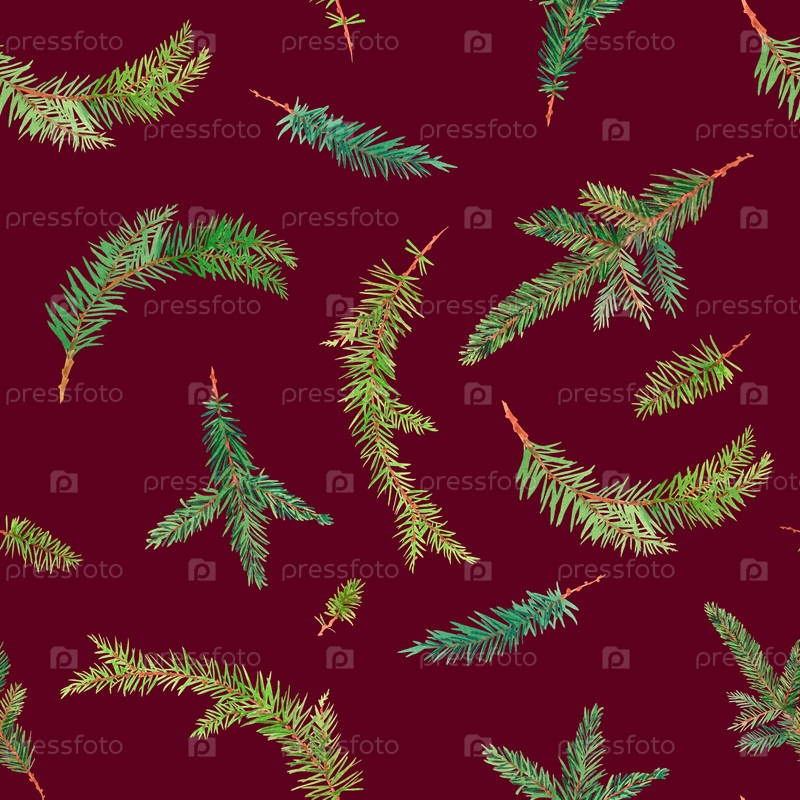 Образец акварели Рождественские ветви на фиолетовом фоне. Ручные акварели. Для ткани, обоев, упаковочной бумаги, поздравительных открыток, дизайна, декора и иллюстрации