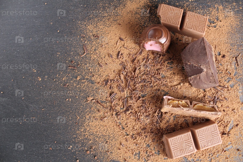 Международный день шоколада молочный темный шоколад на сером черном фоне с копировальным местом для текста