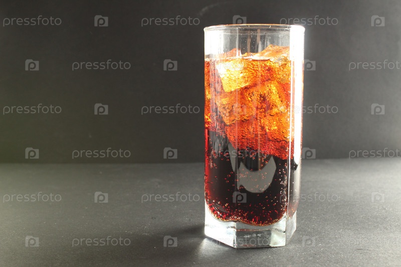 Кола или квас в стакане со льдом на сером фоне с пространством для текста холодного освежающего летнего напитка