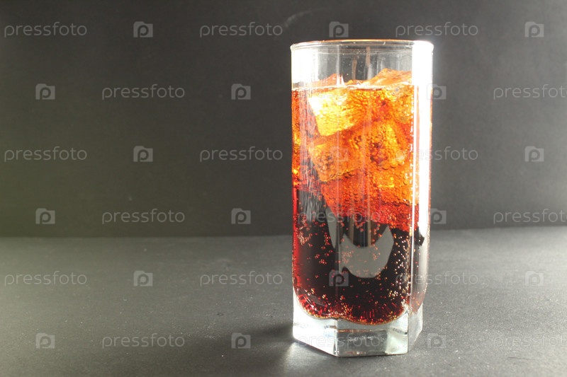 Кола или квас в стакане со льдом на сером фоне с пространством для текста холодного освежающего летнего напитка