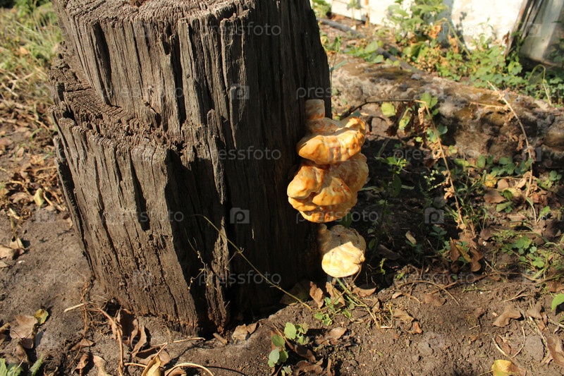 Грибы на старом стебле. Паразитарные грибки в деревьях