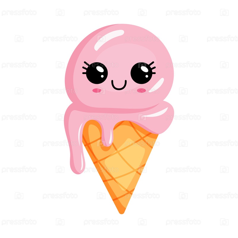 Красивое розовое мороженое с большими выразительными глазами, которые приносят радость и удовольствие