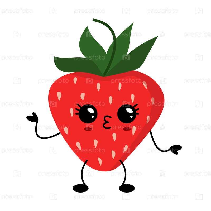 Милый персонаж в стиле клубники кавайи с улыбающимся лицом, изолированным на белом фоне