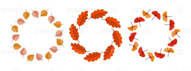 Векторный набор ручно нарисованных осенних венков с разными формами листьев в теплых сезонных цветах на белом фоне