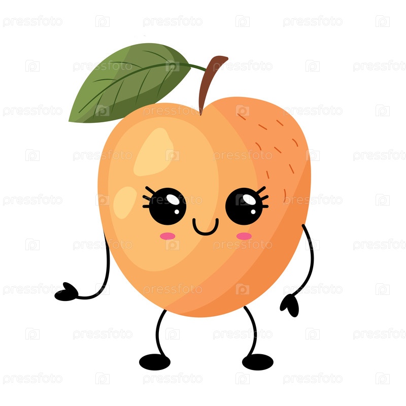 Очаровательный и милый абрикосный персонаж Каваи с большими глазами и листьем на вершине