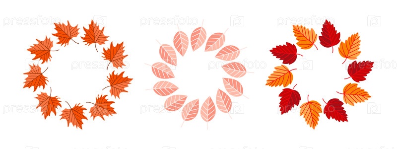 Три декоративных венка из красочных осенних листьев, идеально подходят для осеннего тематического дизайна и украшений