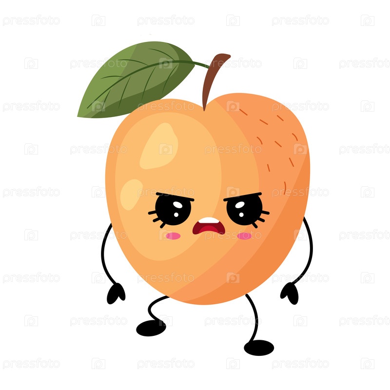 Это милый мультфильмовый персонаж сердитого персика с листьем на голове, полный очарования