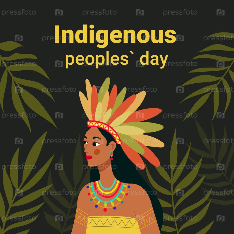 Иллюстрация для Дня коренных народов с изображением женщины в традиционном пернатом головном уборе